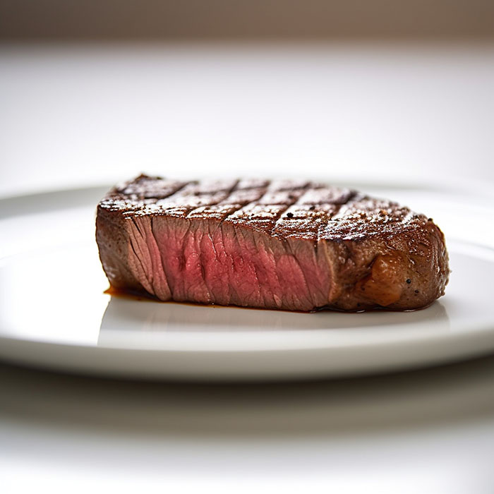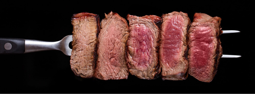 ✔ Степень прожарки стейка Medium rare — идеальная прожарка для классических стейков, красно-розовый цвет внутри. Температура 46-50 °C.