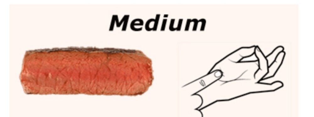 ✔ Начнем с левой руки. Соедините большой и указательный пальцы, словно в жесте, означающем «о’кей». Не разжимайте их. Указательным пальцем правой руки дотроньтесь до ладони левой, у основания большого пальца. Чувствуете, насколько мягко? Запомните это ощущение.По мере прожарки стейка (который, как мы помним, представляет собой кусок мышцы) из мышечных волокон выпаривается влага. Из этого следует простая истина — чем меньше прожарены стейки Рибай, Денвер, Ти-Бон, Нью-Йорк или любой другой из мраморной говядины, тем больше влаги в них остается, а значит, тем мягче они будут, и наоборот.