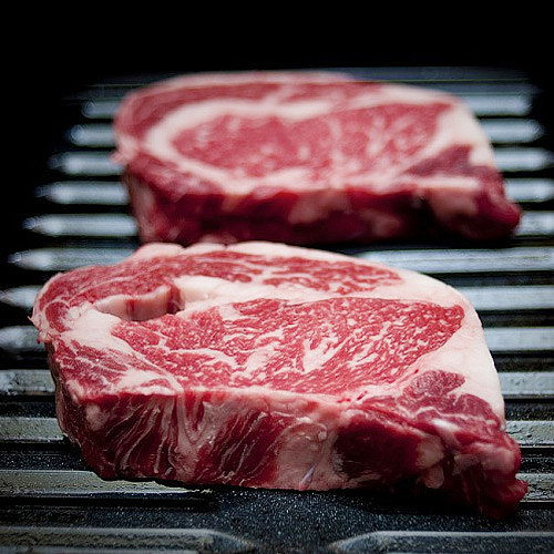 Рибай. Расположение в быке: спинной отруб, толстый край говядины. Другое название: Толстый край, Скотч филе, Дельмонико.