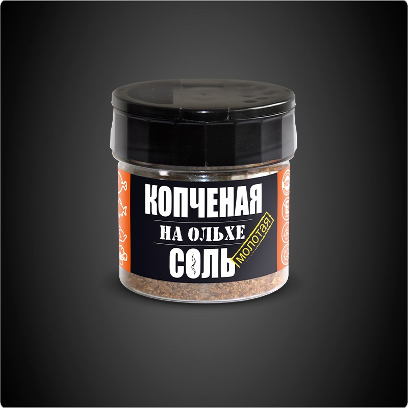 Соль копченая с характерным терпким ароматом. Приготовлена из чистой поваренной соли методом горячего копчения на натуральной ольхе. Придает любому блюду от омлета до десерта ни с чем не сравнимый аромат с тонкими нотами дыма и древесины.