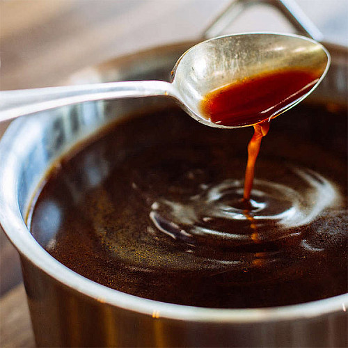 Демиглас — классика французской кухни, о которой знает каждый уважающий себя кулинар. Это один из основных соусов, берущий свое начало в рецептах французской кулинарии. 100 % натуральный говяжий соус Демиглас приготовлен путём медленной варки в течение 72 часов по традиционным французским рецептам. Добавьте в соусную основу специи, овощи, красное вино по вкусу и классический демиглас готов. Не содержит глютена, добавок, лактозы, консервантов и ГМО.