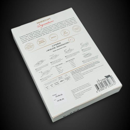 Рекомендации по хранению: после вскрытия вакуумной упаковки храните стейк Миньон Мираторг Signature, филе или вырезку из мраморной говядины в зоне свежести холодильника (температура 0°С) не более 3-х или 4-х дней. Предварительно промокните мясо салфеткой, чтобы убрать лишнюю влагу, и оберните его вафельным полотенцем во избежание заветривания. Полотенце следует менять каждый день на чистое. Также убедитесь, что рядом нет кисломолочных продуктов.