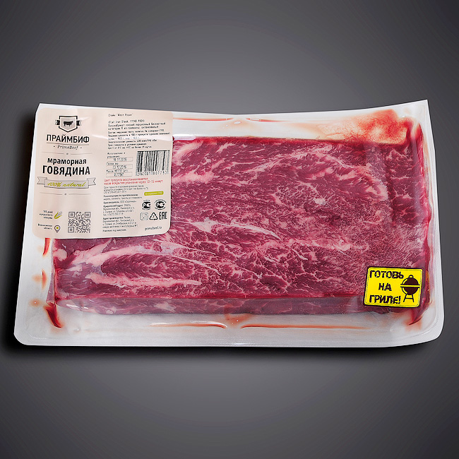Рекомендации по хранению: после вскрытия вакуумной упаковки храните мраморное мясо в зоне свежести холодильника (температура 0°С) не более 3-х или 4-х дней. Предварительно промокните Флэт Айрон стейк салфеткой, чтобы убрать лишнюю влагу, и оберните его вафельным полотенцем во избежание заветривания. Полотенце следует менять каждый день на чистое. Также убедитесь, что рядом нет кисломолочных продуктов.