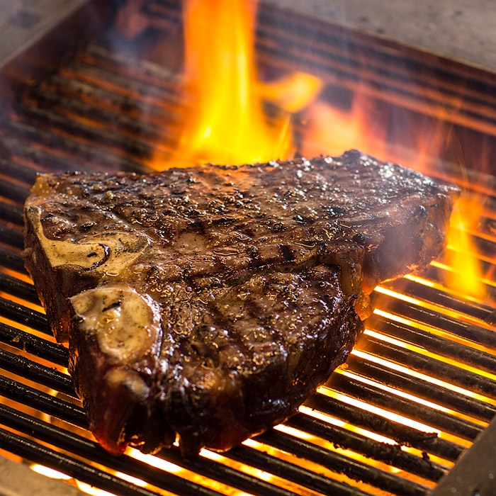 Насыщенный, с брутальной Т-образной костью, этот стейк — настоящий король стейков, бескомпромиссный ужин чемпиона |