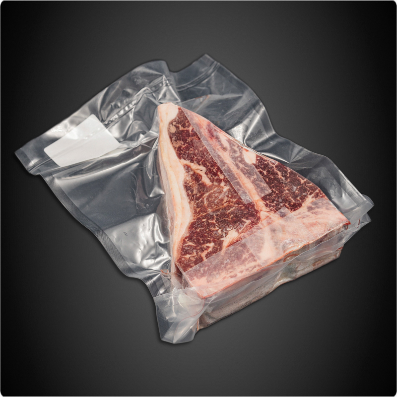 Рекомендации по хранению: после вскрытия вакуумной упаковки, храните стейк Портерхаус из мраморной говядины Мираторг в зоне свежести холодильника (температура 0°С) не более 3-х или 4-х дней. Предварительно промокните флорентийский стейк из говядины салфеткой, чтобы удалить лишнюю влагу, и оберните его вафельным полотенцем во избежание заветривания. Полотенце следует менять каждый день на чистое. Также нужно подальше убрать кисломолочные продукты.