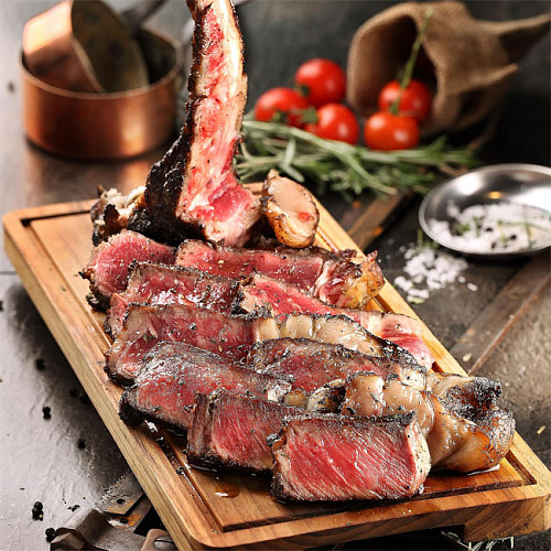 Насыщенный, с брутальной Т-образной костью, этот стейк — настоящий король стейков, бескомпромиссный ужин чемпиона |