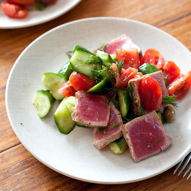 Чем мне нравится тунец, что из одного куска можно приготовить несколько разных блюд. Замораживать его не стоит повторно, поэтому лучше заранее продумать, что будете из него делать, чтобы израсходовать его полностью. Можно часть использовать для тартара, остальное поджарить стейками. Не самое дешёвое удовольствие, но оно того стоит. Кстати, блюда из тунца отлично подойдут для “особенного ужина”, с розовым вином. Мясо диетическое, поэтому ужин будет максимально лёгким и приятным.