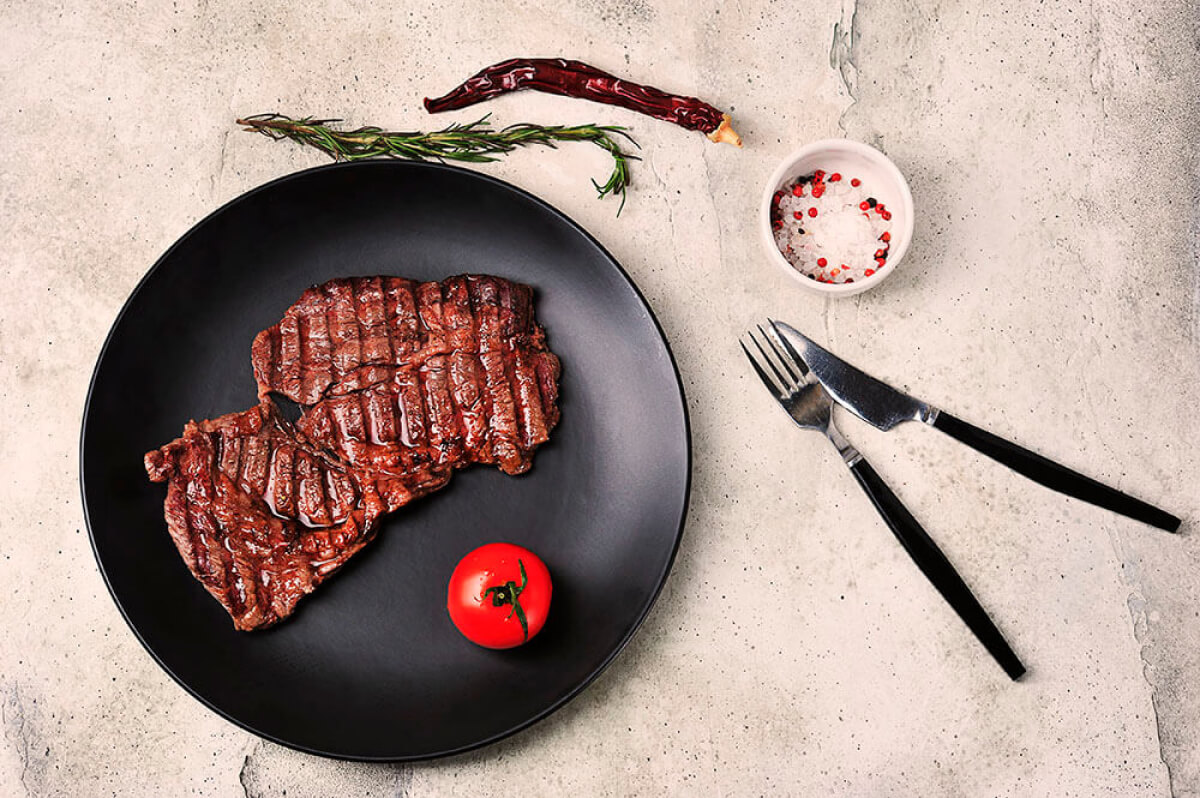 Солить стейк можно на свое усмотрение — перед началом жарки или после того, как сняли с огня. Что касается степени прожарки, можно воспользоваться нашим советом по стейку Топ Блейд, как готовить на гриле: 6 минут на решетке достаточно для тех, кто любит Medium rare (слабая прожарка) и Medium (средняя прожарка). Для большей готовности следует жарить 8 минут или снятые с решётки стейки завернуть в фольгу на 7-10 мин.