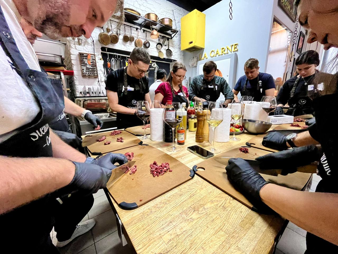 Наша команда тщательно раскрывает все тонкости процесса его приготовления: мы расскажем, как выбрать мясо, как приготовить стейк ресторанного класса дома, и с чем его подать. В расслабленной атмосфере мы прекрасно проводим время, не увиливаем от вопросов и угощаем прекрасным вином — обязательно заходите в гости.